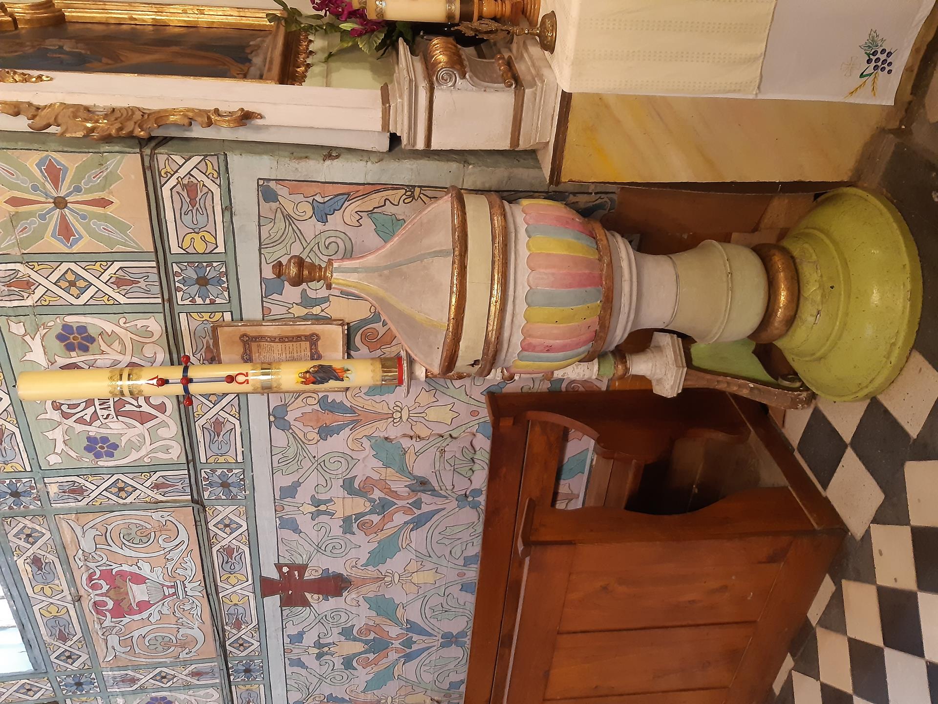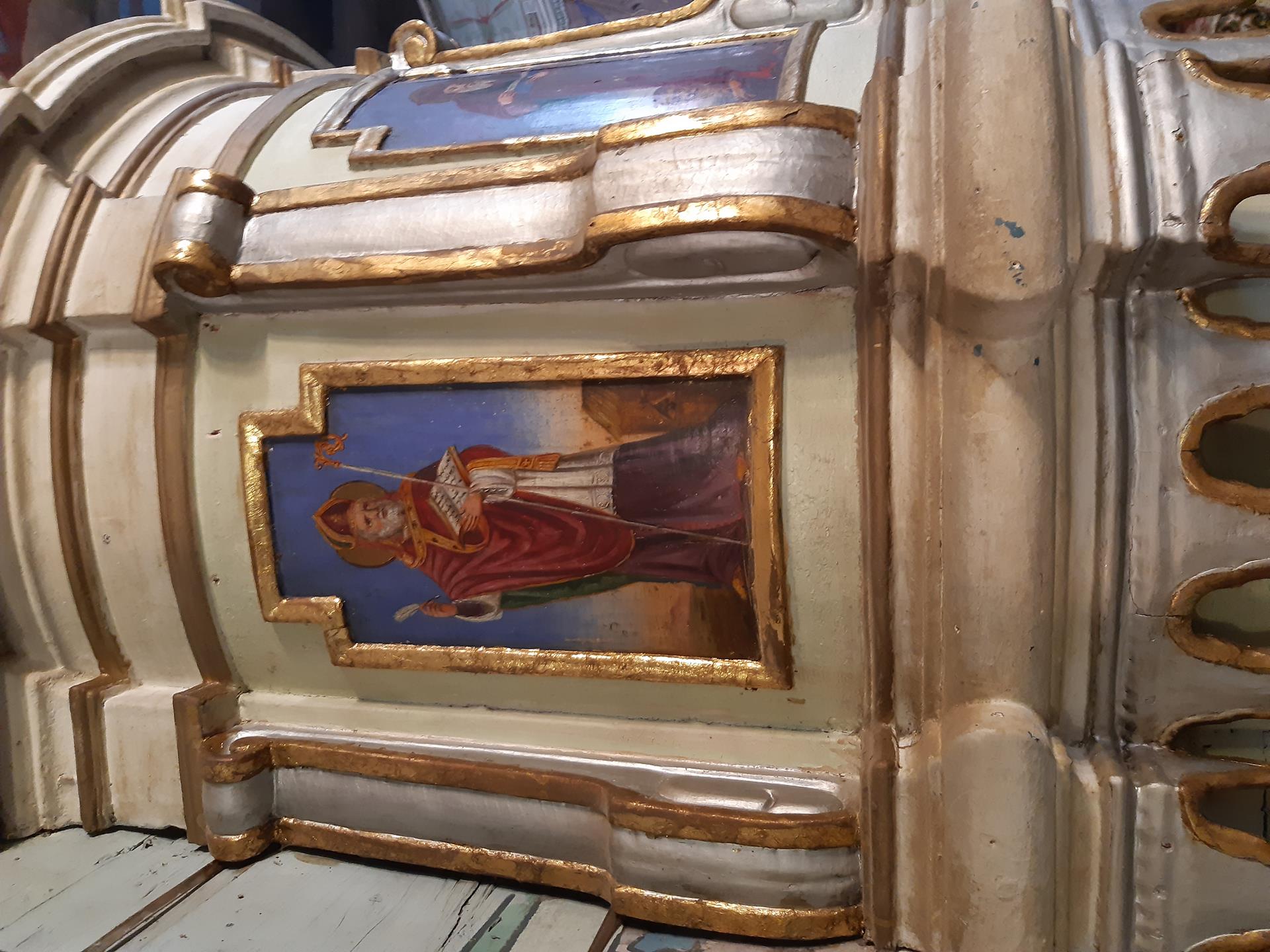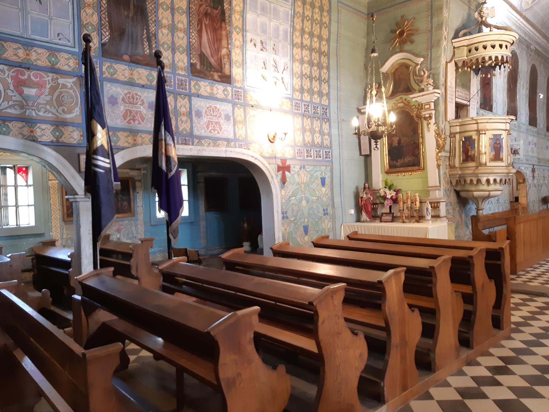 W kościele znajdowały się również sztandary i chorągwie. Były one luźno przymocowane do ławek umieszczonych w nawie.