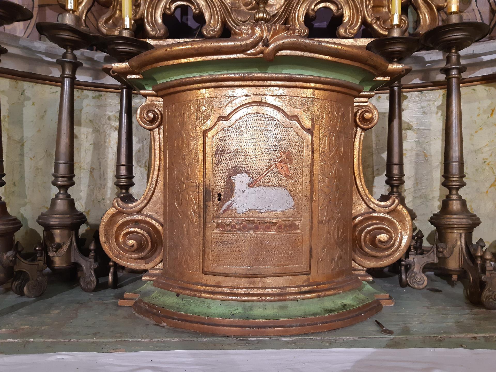 Ławek tych było w świątyni pod koniec XIX w. 15. Trzy znajdowały się w prezbiterium. W jednej zasiadał przed i po nabożeństwach