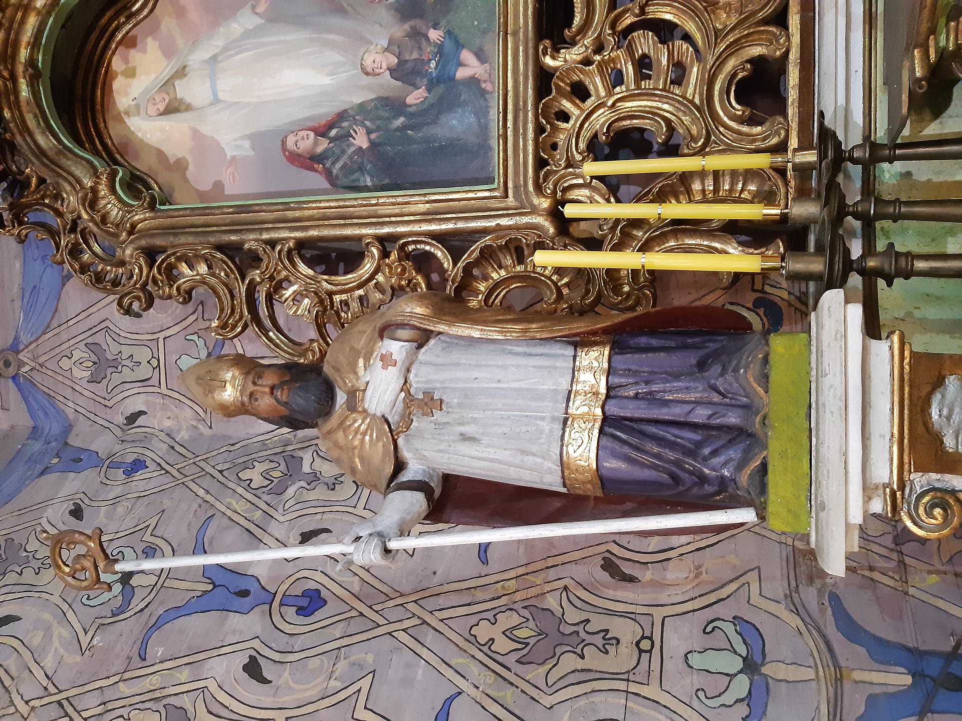 Z pułapu nawy zwisa piękny, bogato zdobiony, żyrandol oraz równie okazałe świecące lichtarze. Przed ołtarzem zwisała ze sklepienia wieczna lampa, dziś ze względów praktycznych, przymocowana do ściany w prezbiterium. W południowej kaplicy, przy ścianie wschodniej znajdował się zabytkowy obraz Matki Boskiej z Dzieciątkiem Jezus (dziś zabezpieczony w nowym kościele). Ten gotycki obraz pochodzi z ok. 1460 r. Jest najstarszym i najcenniejszym zabytkiem świątyni załęskiej. Obraz stanowił środkową część tryptyku, (zachowany w stanie wymagającym renowacji w bocznej kaplicy) pochodzącego z głównego ołtarza wcześniejszej świątyni, ufundowanego przez rodzinę Radwańskich. Po bokach Matki Boskiej z Dzieciątkiem klęczą postaci fundatorów z banderolami o dewocyjnych napisach. Tło obrazu wypełnia krzew, roślinność i winne grono. Obraz tempera na desce posiada wątek Matki Boskiej Apokaliptycznej. Był on w tutejszym kościele już pod koniec XVI w. (jest jednak starszy) i jest to najcenniejszy zabytek w parafii.