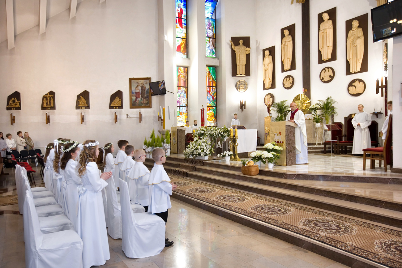 W III Niedzielę Wielkanocną Parafia załęska przeżywała Pierwszą Komunię Świętą. Wydarzenie niezwykle ważne w życiu dziecka, które staje się świadkiem wielkiego cudu i przyjmuje Ciało Chrystusa. Jest to przeżycie duchowe dla dziecka i rodziny.