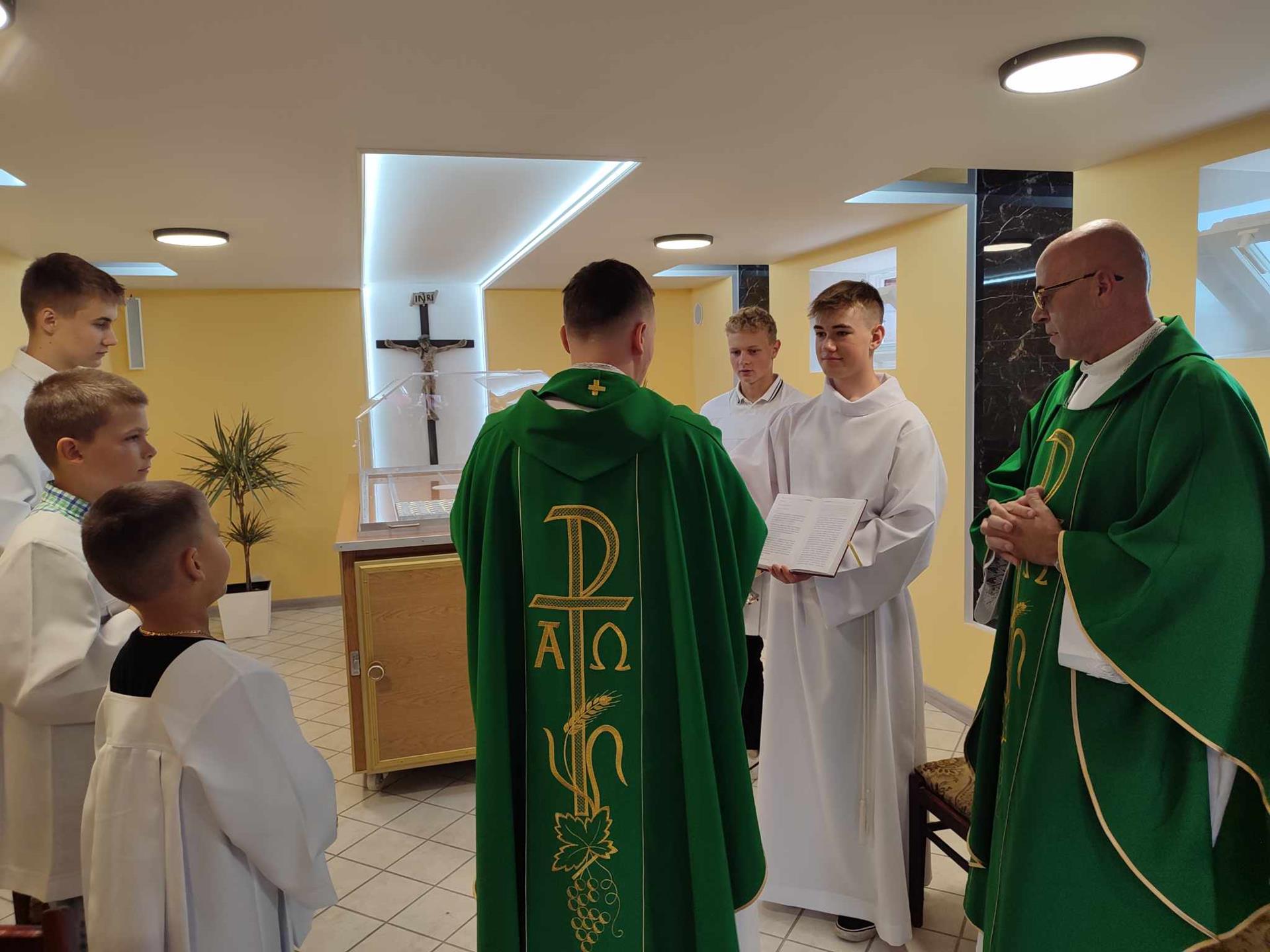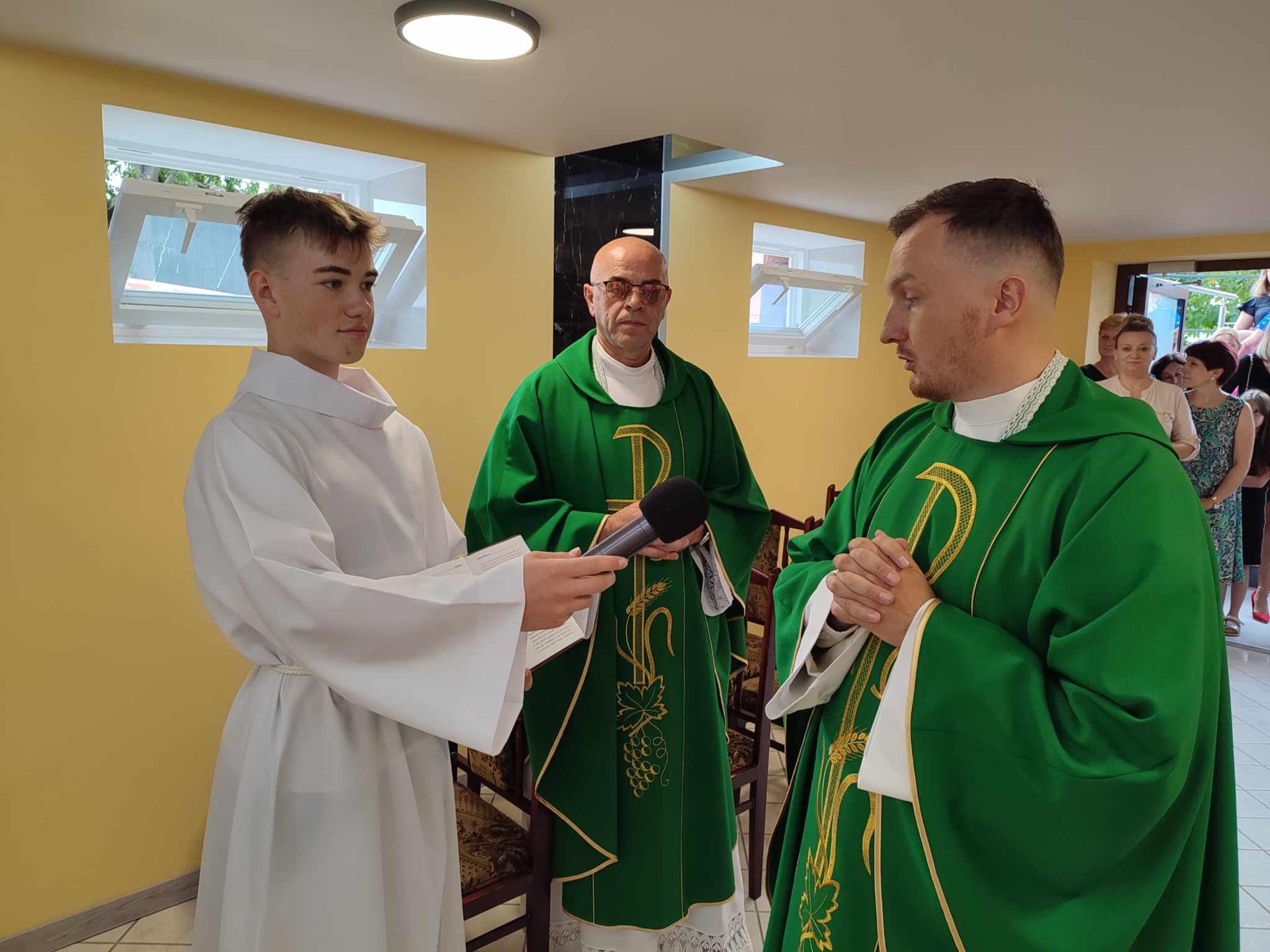 Poświęcenie kaplicy miało miejsce 28 lipca 2024r. Na zakończenie niedzielnej Eucharystii, owoc naszych wysiłków pobłogosławił ks. Łukasz Chłopek w asyście ks. proboszcza.
