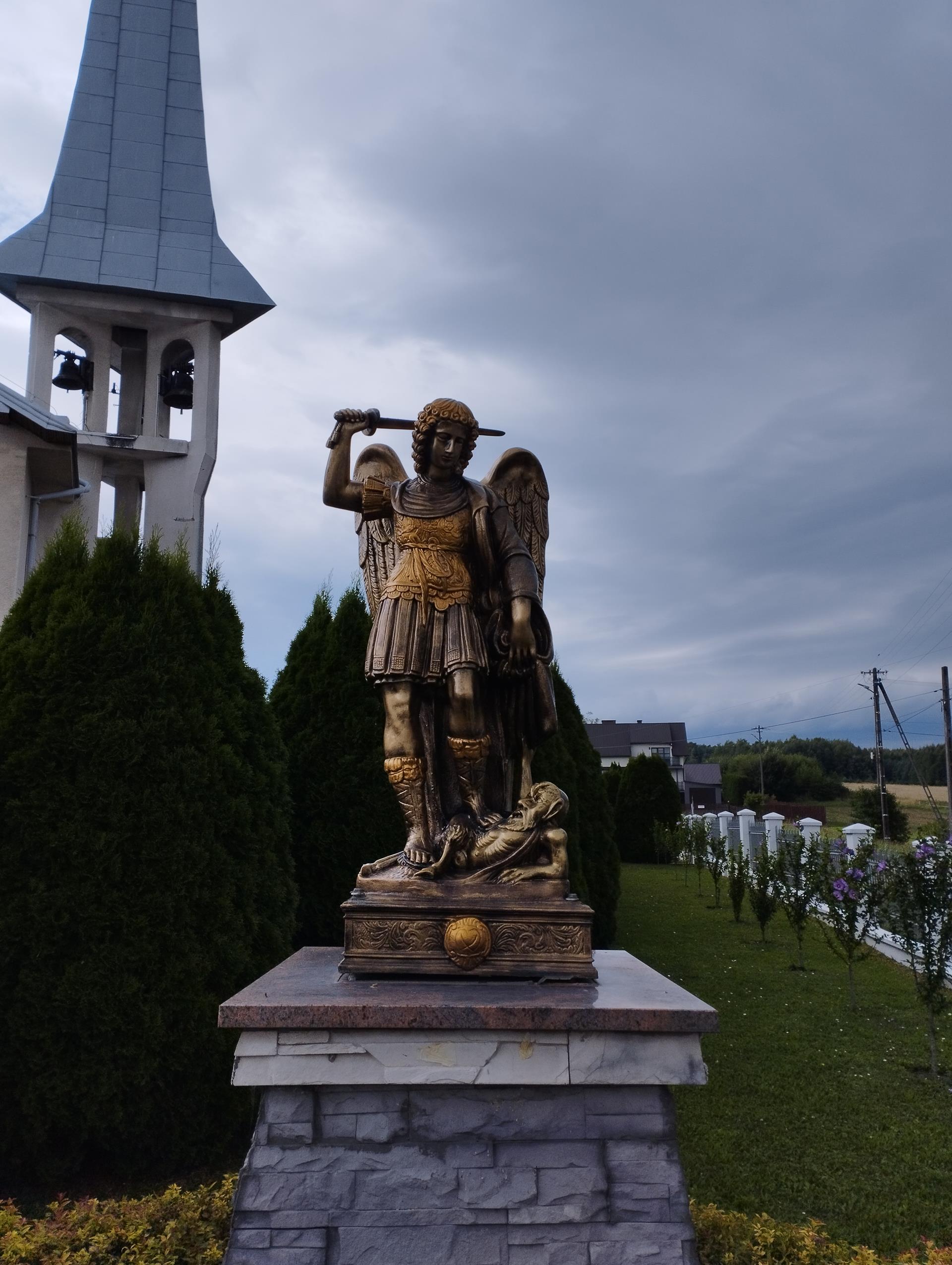 Zdj. Figura św. Michała Archanioła podczas Mszy w int. chorych.