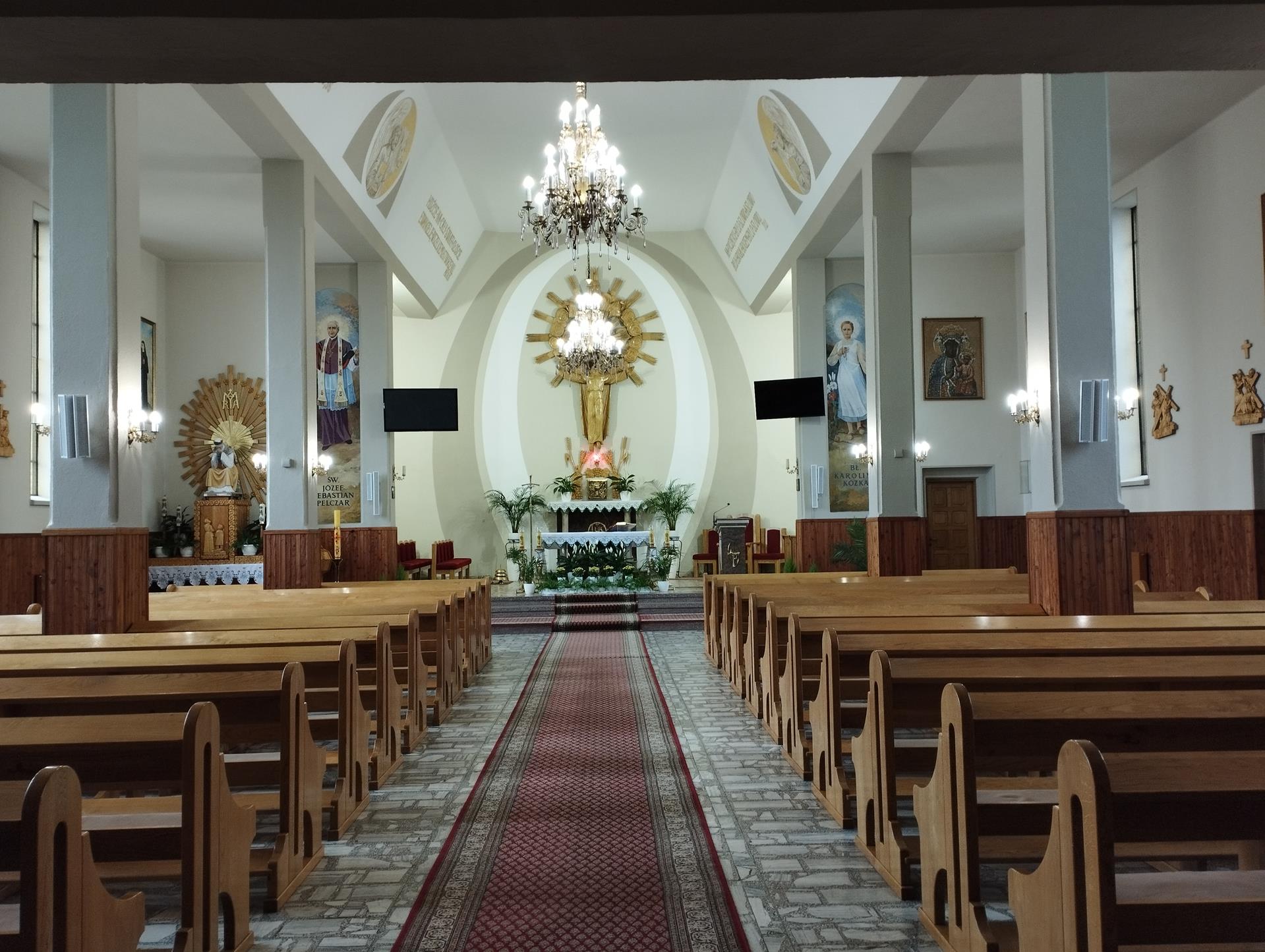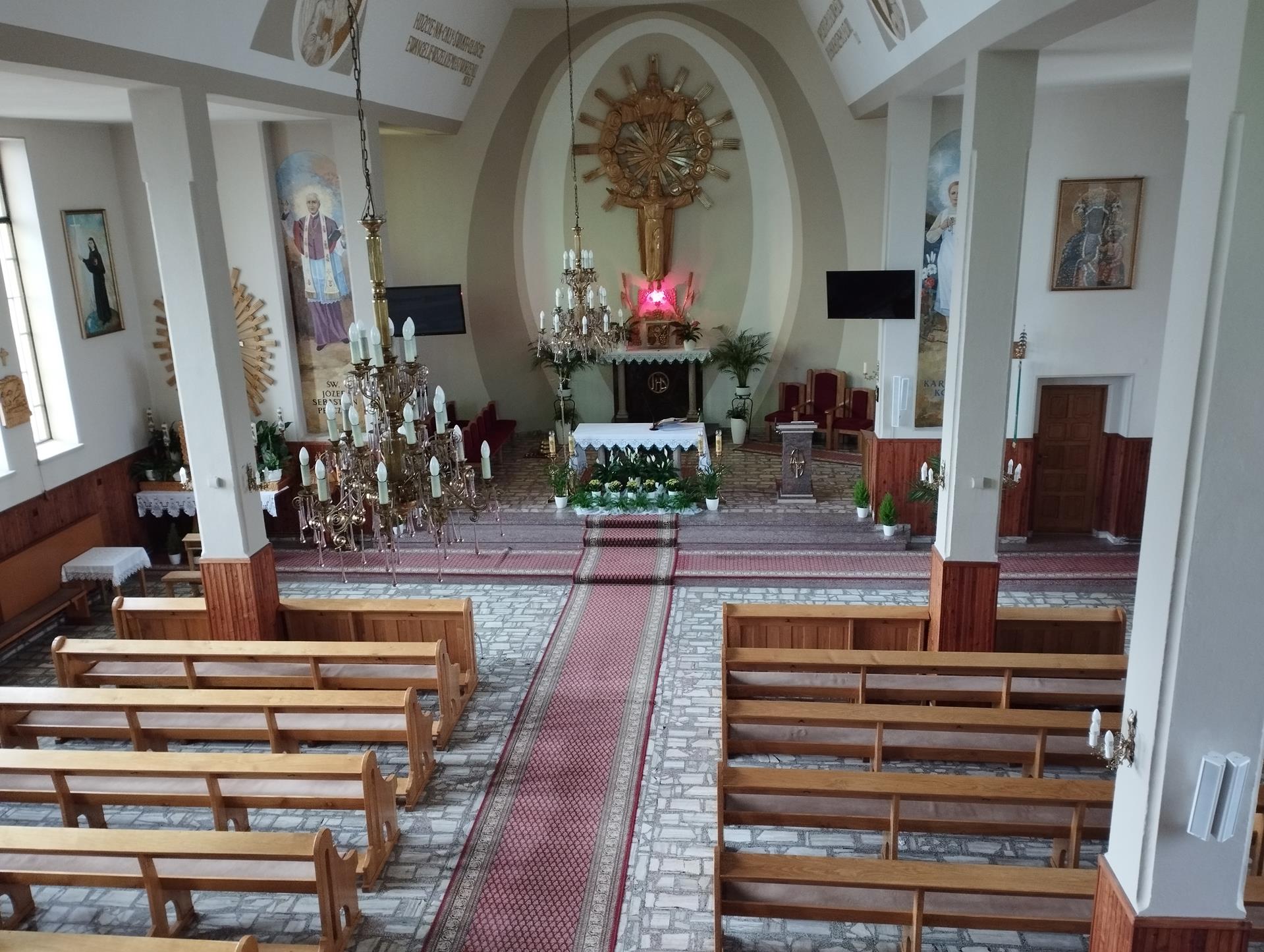 W 2013 roku zostały wykonane dębowe ławki przez miejscowego stolarza, p. Tadeusza Pitrusa oraz nowe miejsce przewodniczenia dla kapłanów celebrujących i siedzenia dla ministrantów. Drewno na ławki pochodziło z lasu wiejskiego. Później zostały obite tapicerką. O codzienne przygotowanie do Mszy Świętej dbają dyżurujący ministranci. Opiekę nad kościołem sprawują państwo Słupscy, mieszkający w sąsiedztwie kościoła.